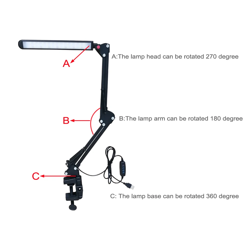 Long Arm Desk Table Lamp 3 Color Modes 9 Brightness Dimming Folding Adjustable LED Table Light USB Light : Click Here